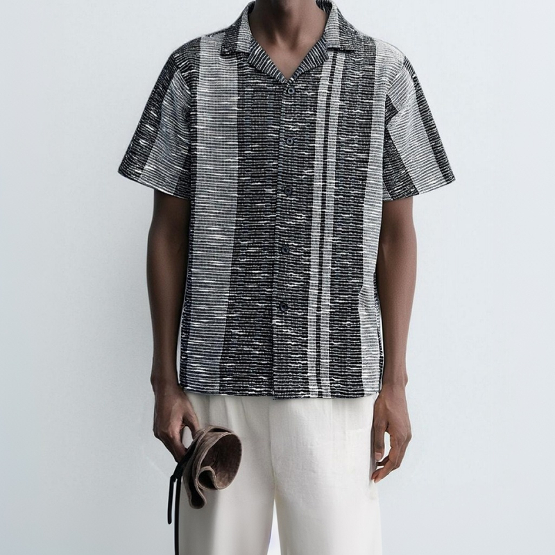 These shirts are designed to cater to the modern man who values quality, versatility, and timeless style. The jacquard knitting and crochet detailing offer a unique selling point, distinguishing them from mass-produced garments. The classic neutral color palette ensures broad appeal, while the lightweight, breathable fabric makes them suitable for year-round wear. Ideal for retailers targeting smart casual wear, these shirts can be positioned as a premium, yet accessible option, appealing to both fashion-conscious consumers and those seeking durable, everyday wear. By emphasizing craftsmanship, comfort, and versatility, these shirts can drive customer engagement and repeat purchases, making them a valuable addition to any menswear collection.